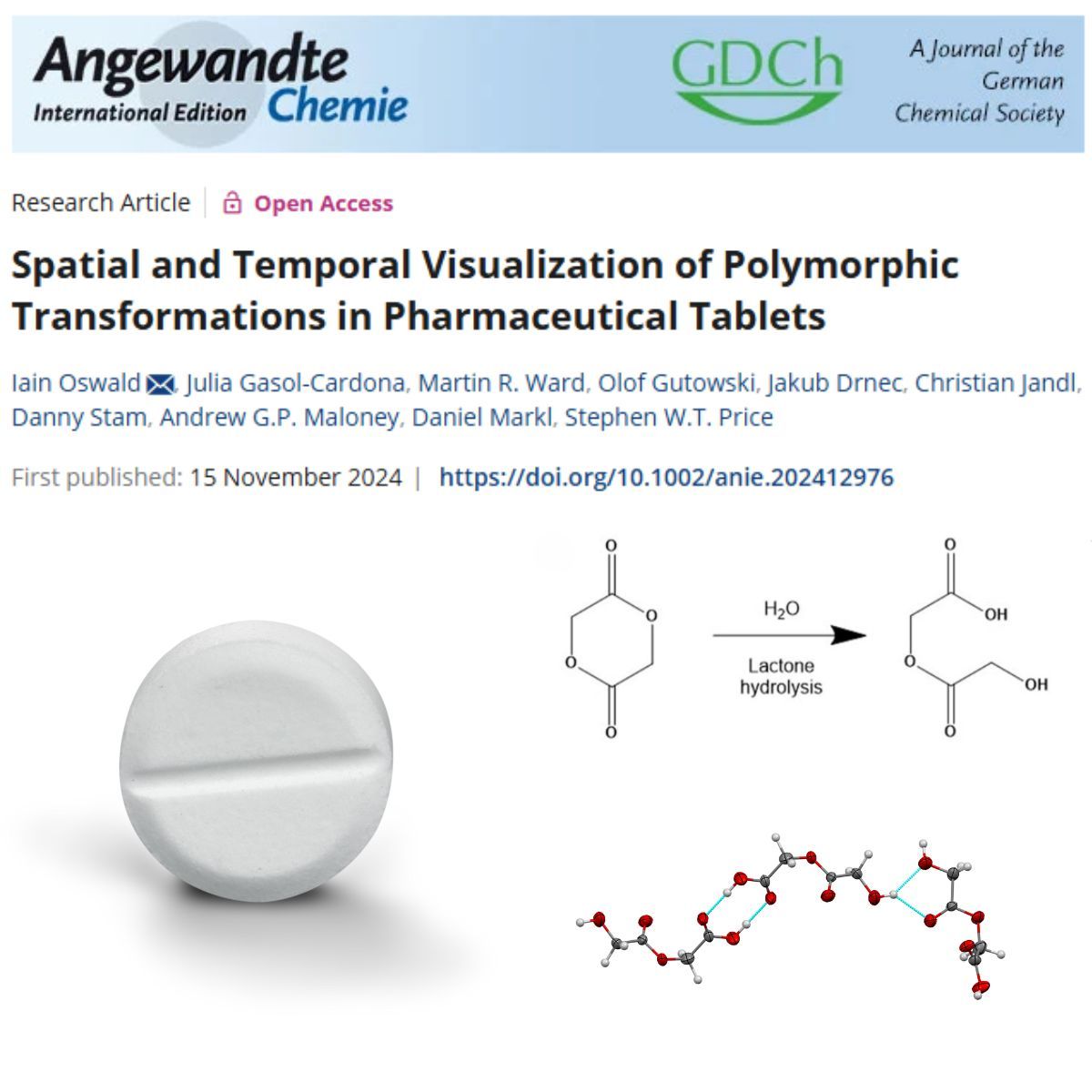 Read our contribution to a recent publication in Angewandte Chemie, where Electron Diffraction measurements done on our ELDICO ED-1 unravelled the crystal structure of a hydrolytic decomposition product, 2-(2-hydroxyacetoxy)acetic acid (HAA), identified during the temporal analysis of pharmaceutical tablets.